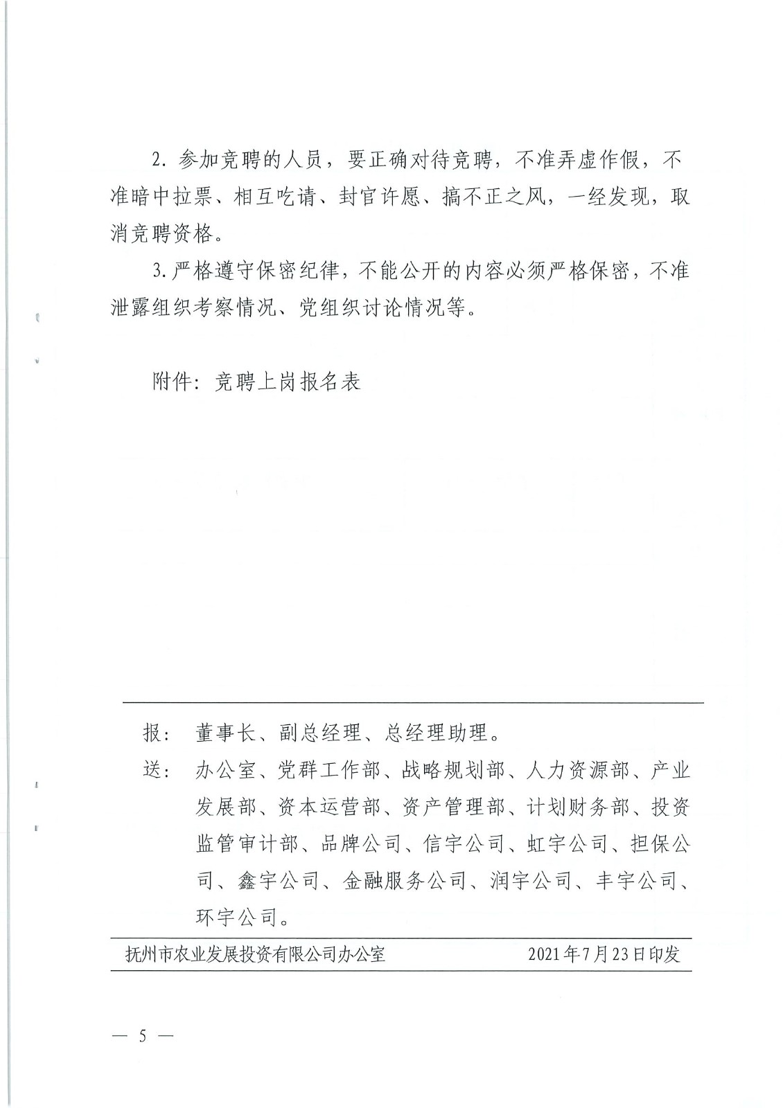 關(guān)于印發(fā)《撫州市農(nóng)業(yè)發(fā)展投資有限公司總部?jī)蓚€(gè)部門正職競(jìng)聘上崗實(shí)施方案(試行)》的通知