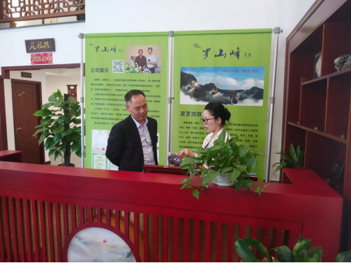 黃有盛一行先后調(diào)研了羅山峰公司崇仁縣靈芝生產(chǎn)基地、展示營(yíng)銷(xiāo)館。在聽(tīng)取了陳琴對(duì)羅山峰公司經(jīng)營(yíng)現(xiàn)狀(以土黑靈芝仿生種植為主、食用菌、中草藥種植為輔,基地面積3萬(wàn)余畝,年產(chǎn)值近億元)、經(jīng)營(yíng)模式(公司+農(nóng)民合作社+家庭農(nóng)場(chǎng)+農(nóng)戶(hù))、產(chǎn)業(yè)扶貧成效(帶動(dòng)2個(gè)省級(jí)貧困村、600余戶(hù)農(nóng)民脫貧)等方面的匯報(bào)后,黃有盛對(duì)羅山峰公司的發(fā)展理念和取得的成效給予肯定。