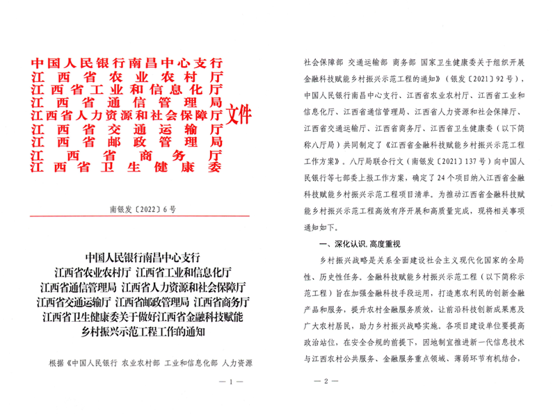 近日,由市農(nóng)發(fā)投公司建設(shè)的“三農(nóng)融資風(fēng)控平臺(tái)”,作為江西省金融科技賦能鄉(xiāng)村示范工程項(xiàng)目,被中國(guó)人民銀行總行審批通過(guò)。