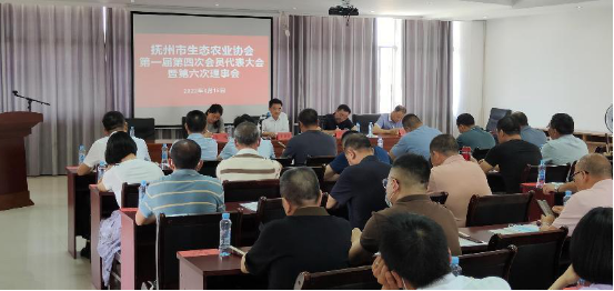 2022年6月15日上午,撫州市生態(tài)農(nóng)業(yè)協(xié)會第一屆第四次會員代表大會暨第六次理事會在撫州田園夢食品有限公司會議室順利召開。市農(nóng)發(fā)集團班子成員,協(xié)會副會長、理事、秘書長及會員代表共計50余人參加會議,會議由市農(nóng)發(fā)集團總經(jīng)理胡建軍主持。